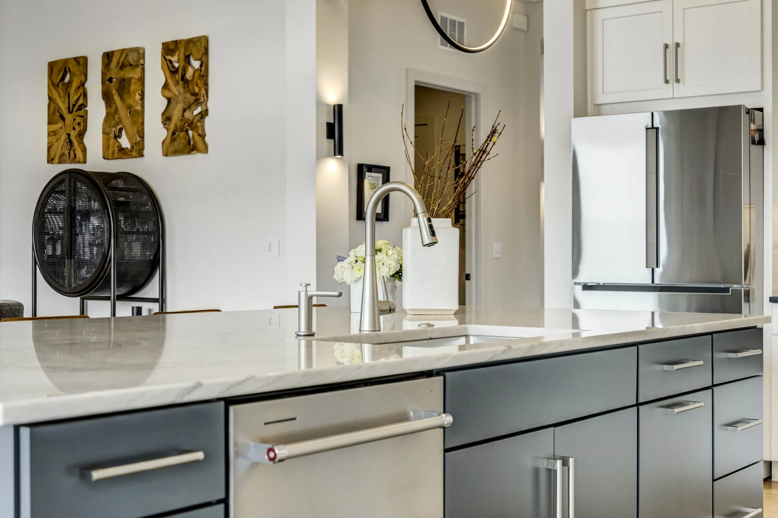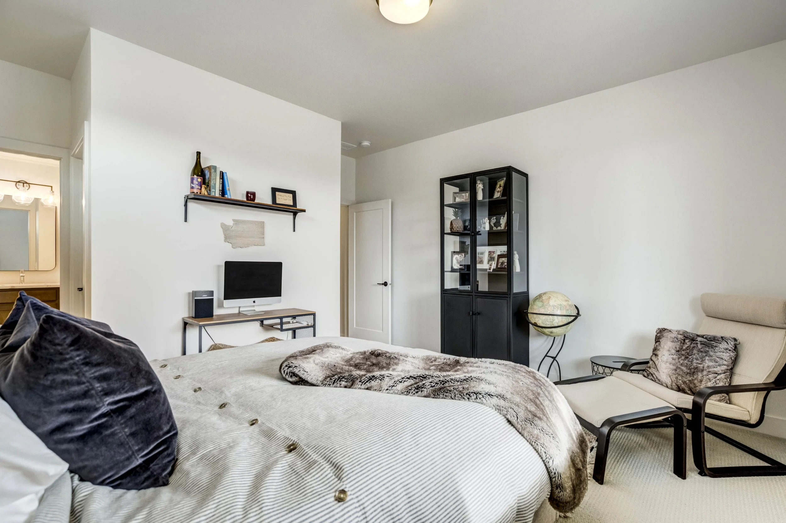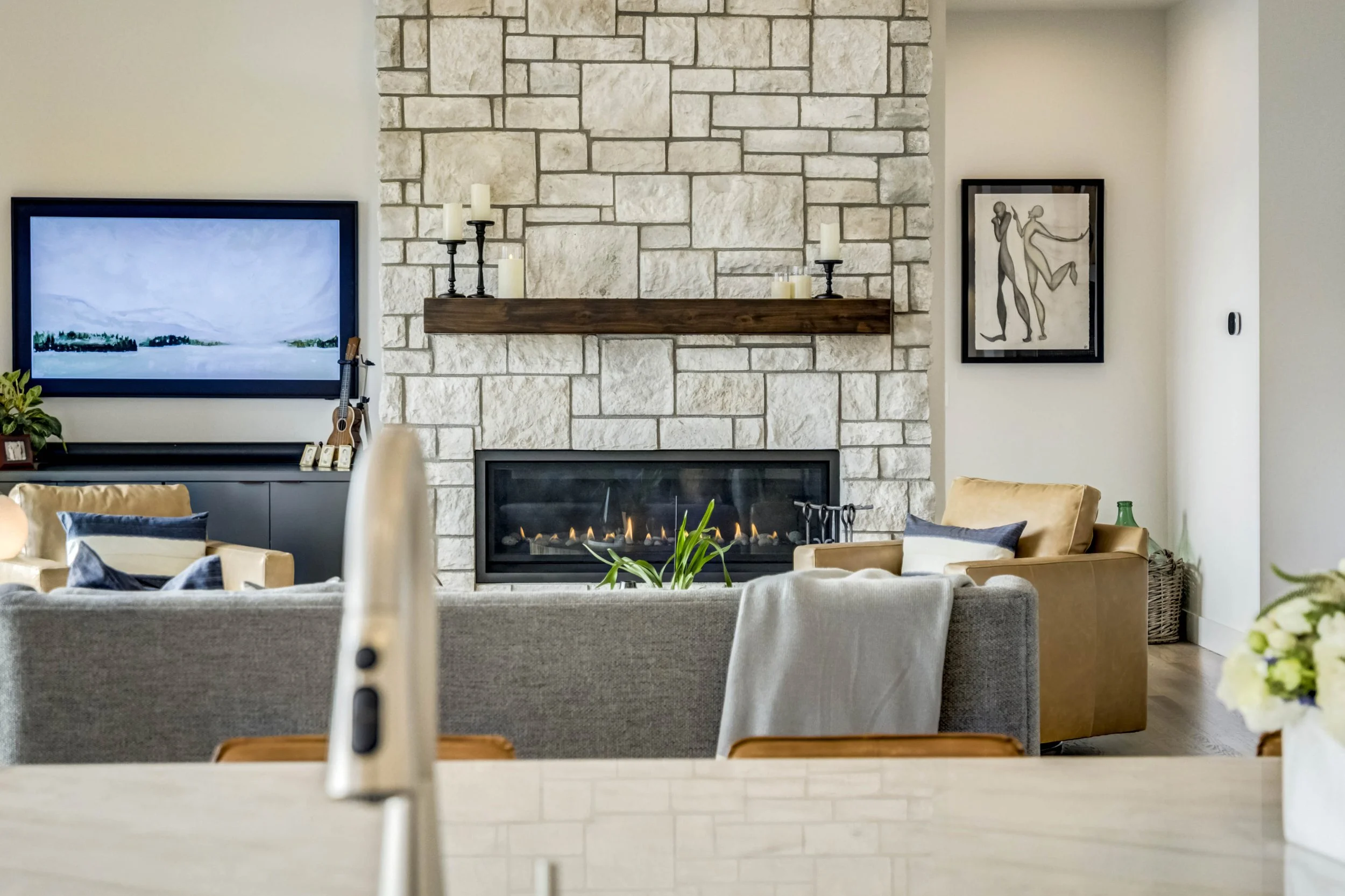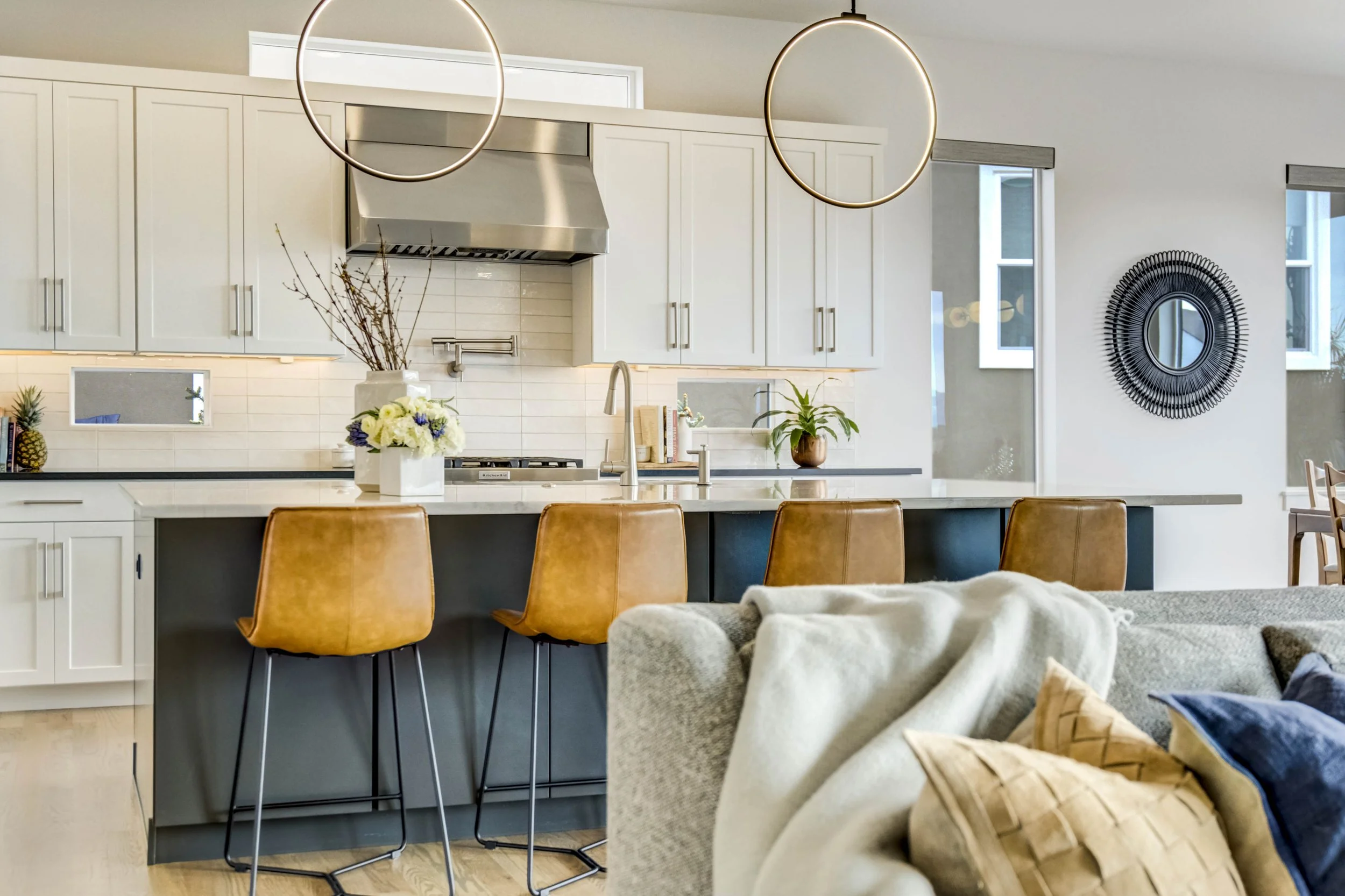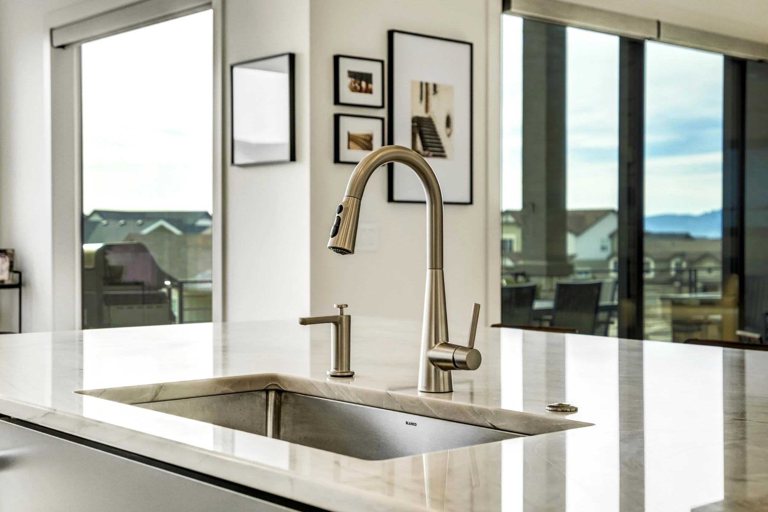 Commanding a .29-acre executive lot, this customized ranch floorplan by Saddletree Homes captures panoramic Pikes Peak and Front Range views—an architectural statement set against Colorado’s iconic backdrop. Soaring 10–13’ ceilings, 8’ doors, alder beams, electronic blinds + hardwood floors on the main, upgraded windows, lightly hand-troweled walls + dimmable lighting establish craftsmanship throughout. A floor-to-ceiling stone fireplace anchors the great room, while a dramatic Western Wall stacked slider creates seamless transition to outdoor living framed by mountain horizon. The kitchen balances design + performance w/10’ quartzite island, honed quartzite countertops, two-toned soft-close cabinetry, stainless steel appliances including gas range w/pot filler, under-cabinet lighting + walk-in pantry. A 2nd main-lvl bedroom + bath offer guest/multi-gen flexibility. The owner’s suite features integrated speakers, heated tile floors, mud-set shower w/linear drain, dual heads + quartz bench, quartz vanities w/counter-to-ceiling backsplash, freestanding tub + expansive walk-in closet opening directly to laundry rm. The walk-out bsmt is designed for entertaining w/9’ ceilings, surround sound, wet bar w/substantial granite edge, beverage refrigerator, ice maker, temperature-controlled wine cellar, Jr Suite w/walk-in closet + private bath, dedicated office w/French doors + modern fireplace, 4th bed/bath + unfinished storage. Outdoor living rivals w/bocce court, built-in kitchen w/dual-fuel pizza oven, black granite water feature, modern pavers w/gas fire pit, expansive concrete covered deck + sun deck w/speakers + gas line. Oversized finished 3-car garage pre-wired for EV charger. Located in the sought-after Farm community w/District 20 schools, The Gathering Place Rec Center, trails + open space + convenient access to shopping, dining + I-25. Constructed for high-performance efficiency, this residence delivers elevated design + lifestyle distinction without compromise.