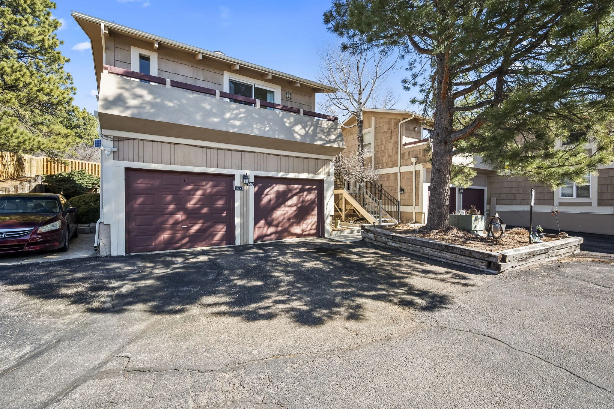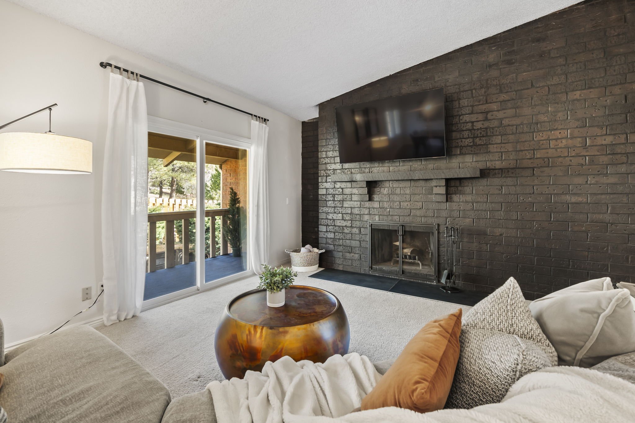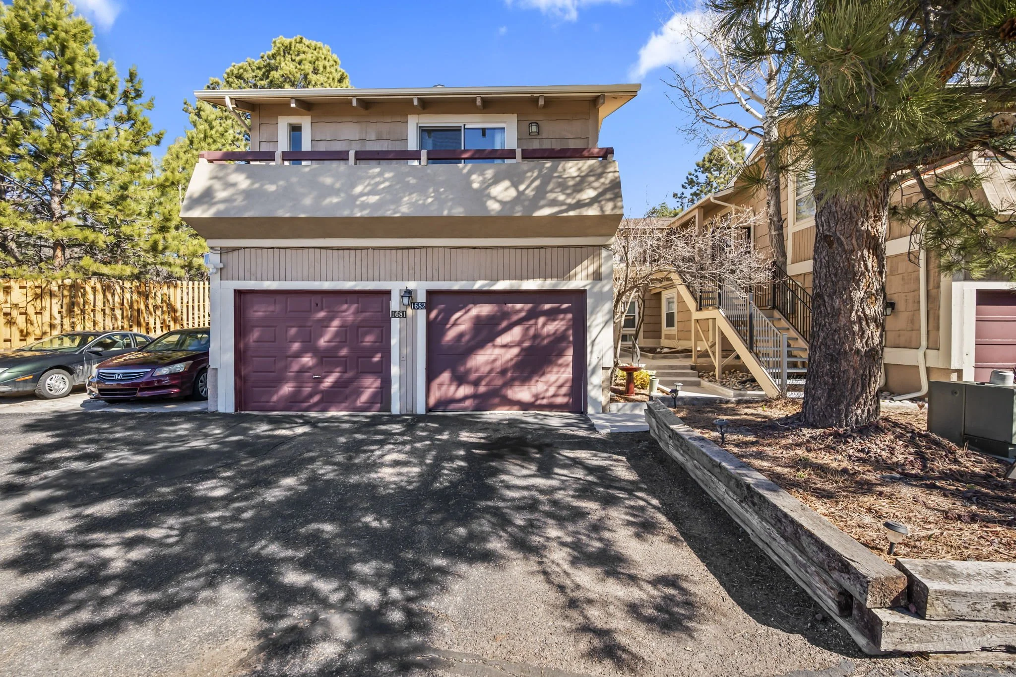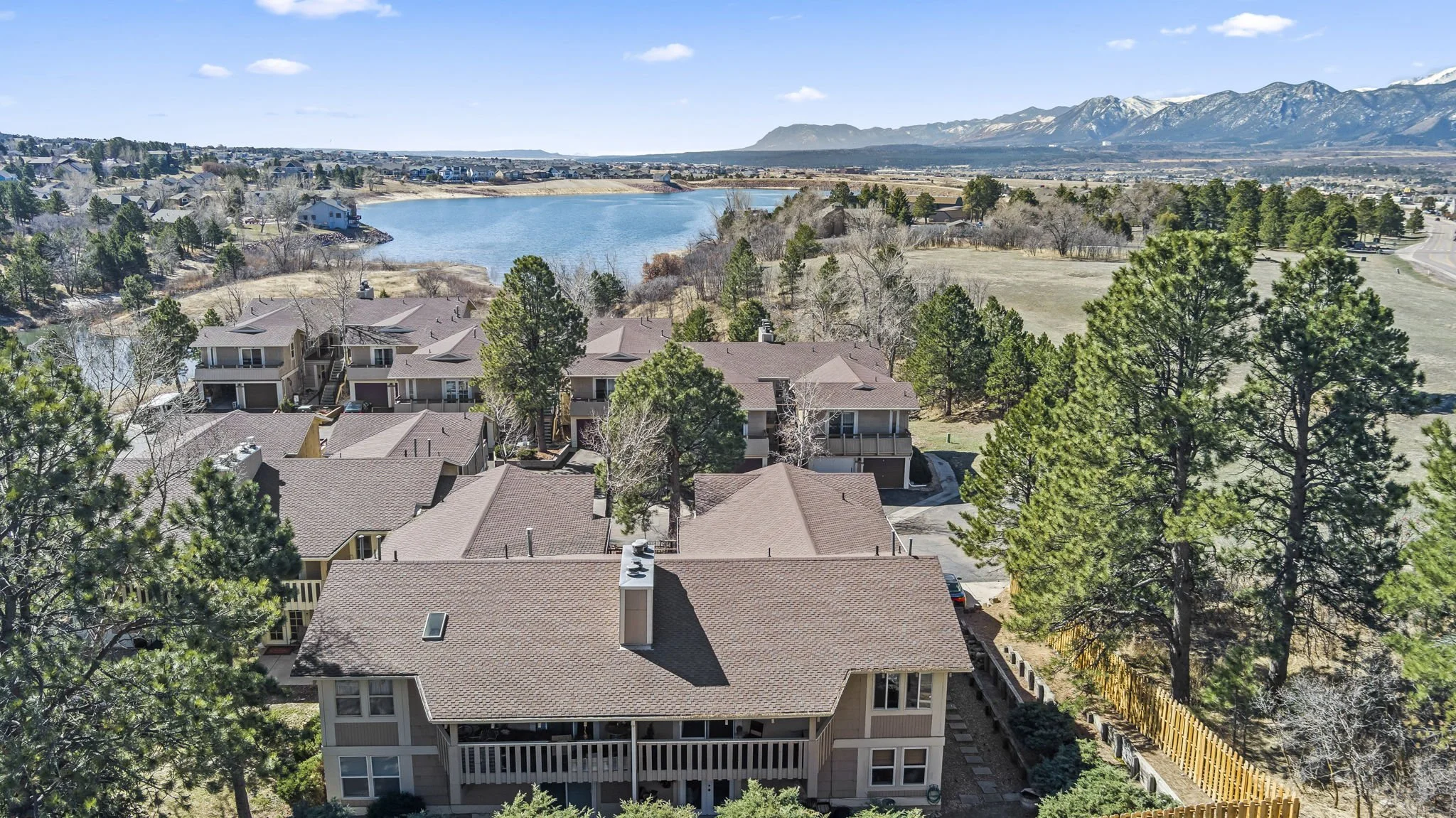 Lakeside living w/mountain views, natural serenity, and effortless style. This beautifully updated 3-bedroom, 2-bath ranch-style condo is tucked within the peaceful setting of The Cove at Woodmoor, offering a rare blend of privacy, views + low-maintenance living. Inside, an open-concept layout is enhanced by updated LVP flooring, new carpet, abundant natural light + a striking exposed brick feature wall that adds warmth + architectural interest. The great room is anchored by a wood-burning fireplace + sliding doors that lead to a covered balcony—ideal for quiet moments surrounded by nature. Just beyond the great room, a bonus area adds valuable flexibility—perfect as a home office, creative or wellness nook. Open yet distinct, it offers natural separation while maintaining the home’s airy, connected feel. The updated kitchen features stainless steel appliances + a generous counterspace that opens seamlessly into the living spaces, while a dedicated dining area offers room to gather + entertain. The primary suite is a true retreat, featuring a private en-suite bath, walk-in closet and its own balcony w/stunning views of Pikes Peak + Woodmoor Lake. The additional spacious bedrooms provide comfortable space for guests or everyday living. Both bathrooms have been thoughtfully updated w/tasteful finishes + tile surrounds. An oversized garage is complemented by an interior storage room, offering exceptional space for gear or seasonal items. Surrounded by mature pines + open space, residents of The Cove at Woodmoor enjoy access to Woodmoor’s private trails, stocked fishing ponds, community open spaces, + The Barn, a beloved community center for gatherings and events. Located near Woodmoor Open Space, Palmer Lake, award-winning Lewis-Palmer District 38 schools, and just minutes to shops, dining, I-25—this home offers a lifestyle that feels connected yet refreshingly calm. Low-maintenance living. Elevated surroundings. A setting that invites you to slow down and stay awhile.