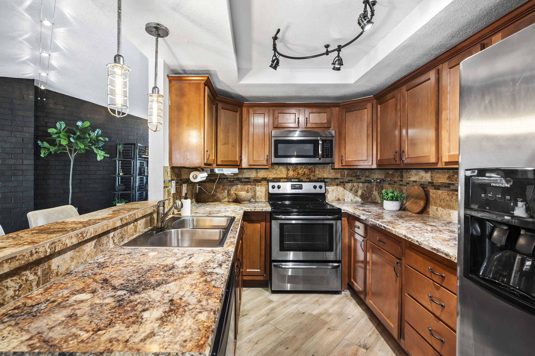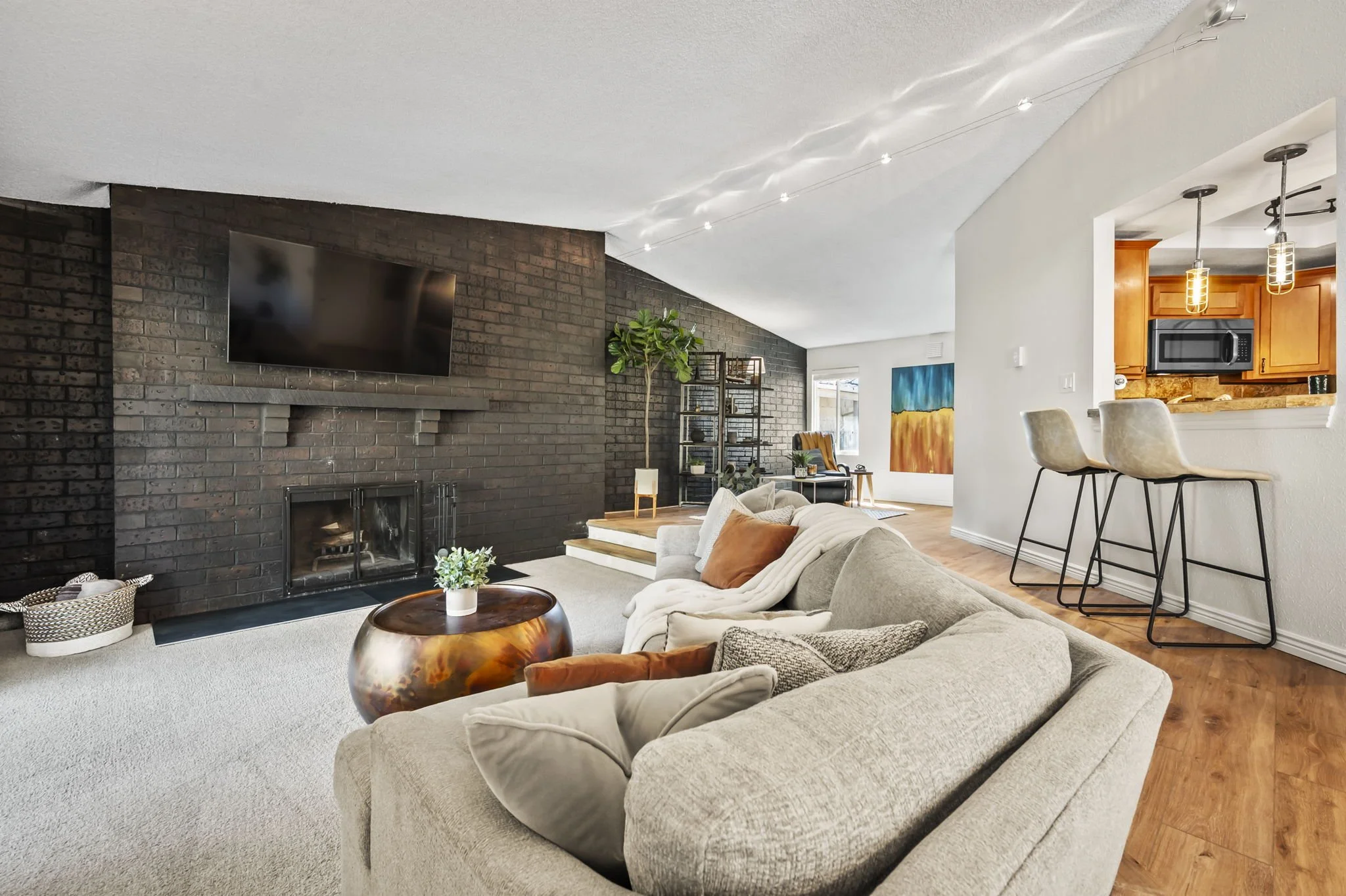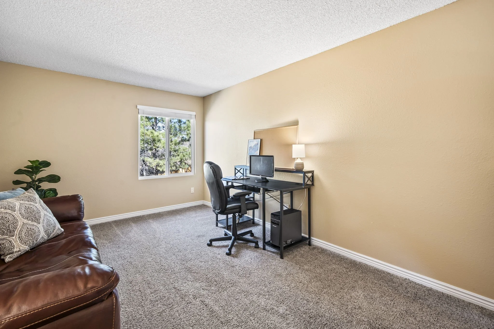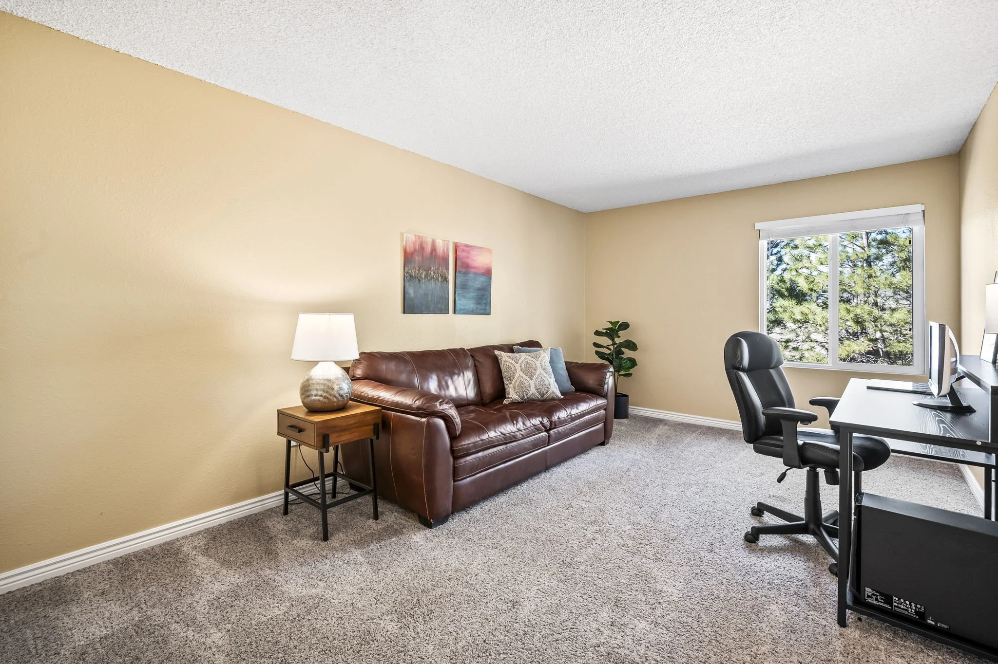 Lakeside living w/mountain views, natural serenity, and effortless style. This beautifully updated 3-bedroom, 2-bath ranch-style condo is tucked within the peaceful setting of The Cove at Woodmoor, offering a rare blend of privacy, views + low-maintenance living. Inside, an open-concept layout is enhanced by updated LVP flooring, new carpet, abundant natural light + a striking exposed brick feature wall that adds warmth + architectural interest. The great room is anchored by a wood-burning fireplace + sliding doors that lead to a covered balcony—ideal for quiet moments surrounded by nature. Just beyond the great room, a bonus area adds valuable flexibility—perfect as a home office, creative or wellness nook. Open yet distinct, it offers natural separation while maintaining the home’s airy, connected feel. The updated kitchen features stainless steel appliances + a generous counterspace that opens seamlessly into the living spaces, while a dedicated dining area offers room to gather + entertain. The primary suite is a true retreat, featuring a private en-suite bath, walk-in closet and its own balcony w/stunning views of Pikes Peak + Woodmoor Lake. The additional spacious bedrooms provide comfortable space for guests or everyday living. Both bathrooms have been thoughtfully updated w/tasteful finishes + tile surrounds. An oversized garage is complemented by an interior storage room, offering exceptional space for gear or seasonal items. Surrounded by mature pines + open space, residents of The Cove at Woodmoor enjoy access to Woodmoor’s private trails, stocked fishing ponds, community open spaces, + The Barn, a beloved community center for gatherings and events. Located near Woodmoor Open Space, Palmer Lake, award-winning Lewis-Palmer District 38 schools, and just minutes to shops, dining, I-25—this home offers a lifestyle that feels connected yet refreshingly calm. Low-maintenance living. Elevated surroundings. A setting that invites you to slow down and stay awhile.